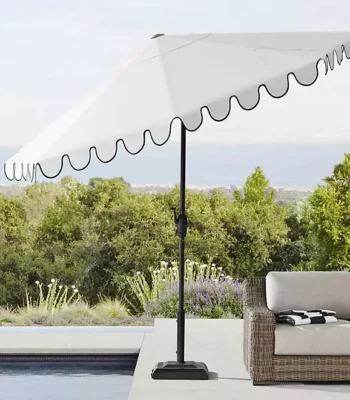Veranura 10’ Scalloped Market Umbrella – Sunbrella® Fabric with Auto-Tilt & Crank Lift