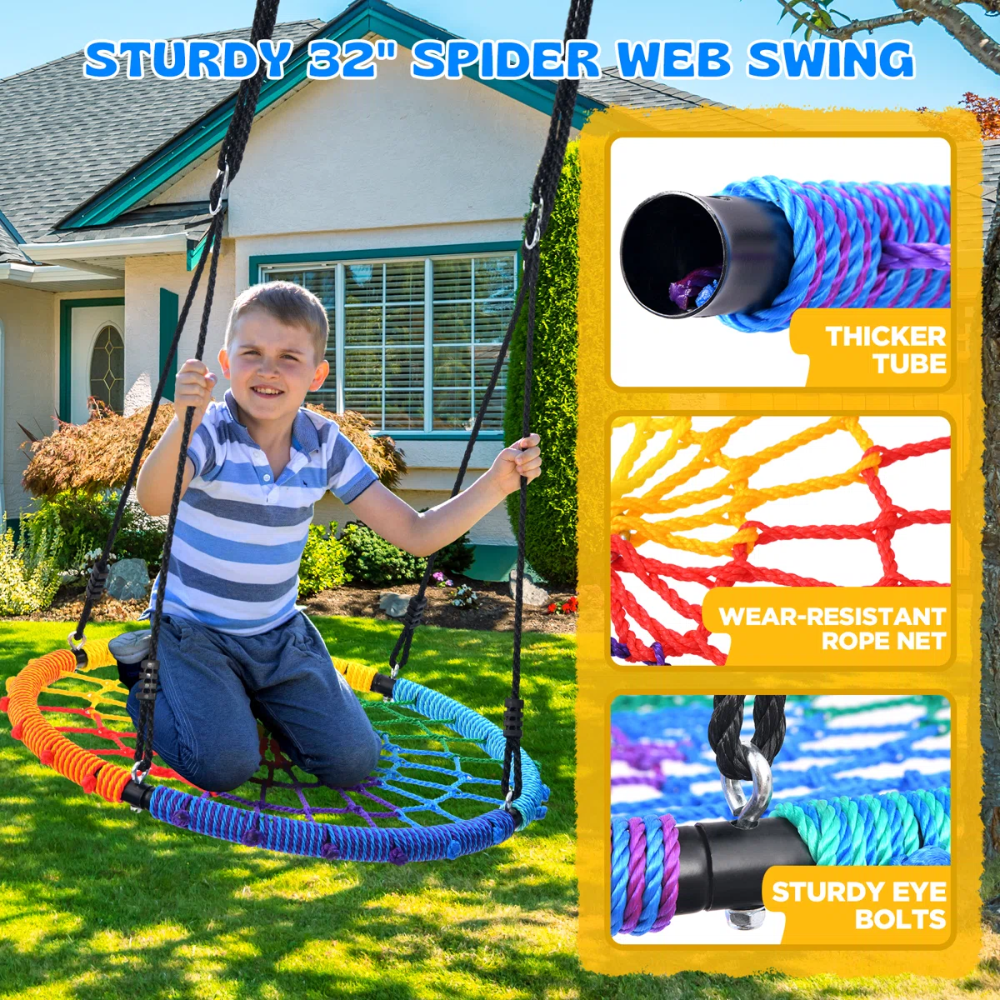 - Two swing types allow variety (round/spider swing for multiple riders or lounging, belt swing for traditional swinging)