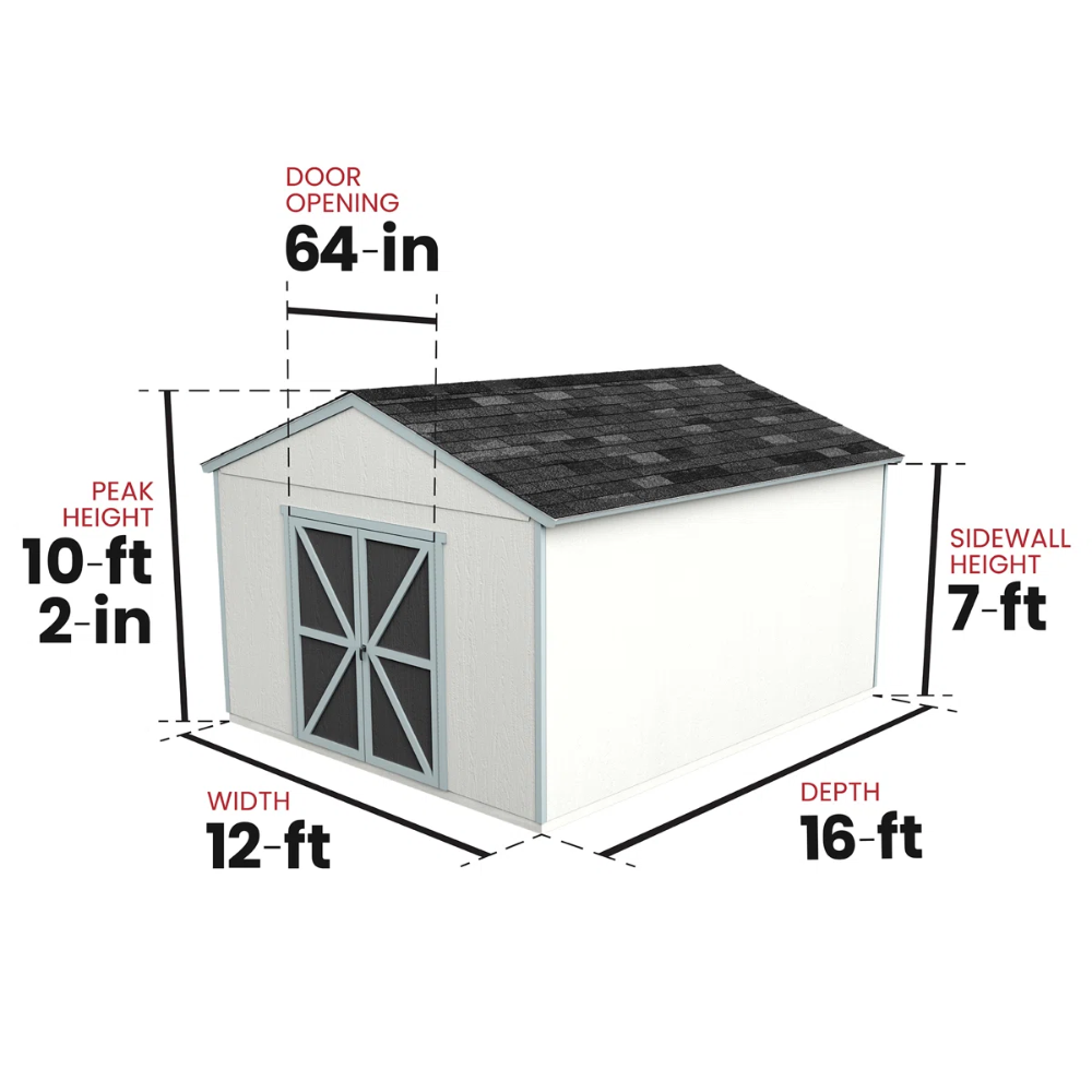 The Handy Home Astoria 12 ft W x 12 ft D Wood Storage Shed is a spacious and durable outdoor storage solution, ideal for storing tools, equipment, or even converting into a small workshop or studio. Designed for DIY assembly, this shed offers generous storage capacity and robust construction.