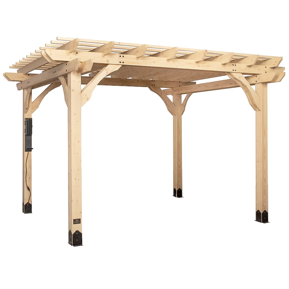 The Backyard Discovery Cedar Pergola (12 ft × 10 ft) is a beautifully crafted, durable outdoor structure designed to enhance your backyard or patio. Made from 100% cedar wood, it offers a blend of natural beauty and structural strength, providing a shaded area ideal for relaxing, dining, or entertaining.