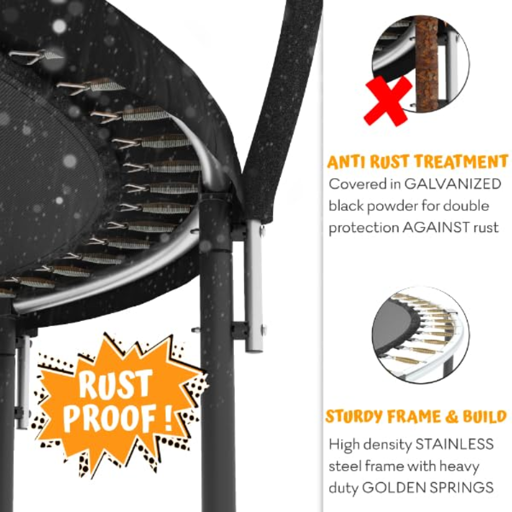 • Weather‑resistant jumping mat, UV‑protected to endure sun exposure